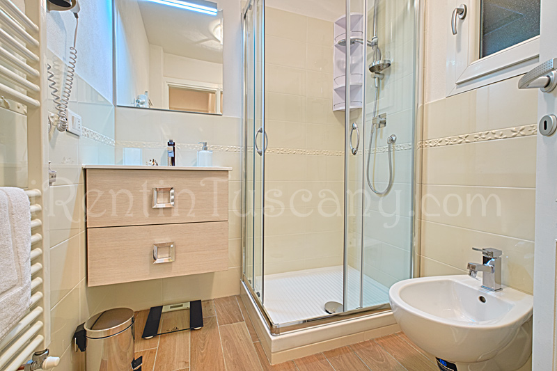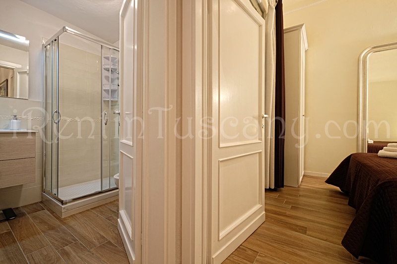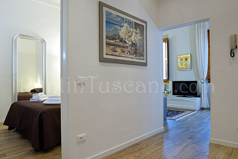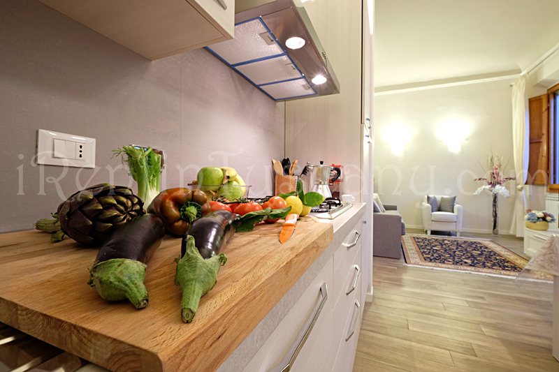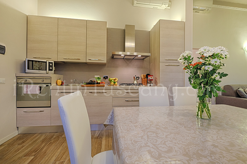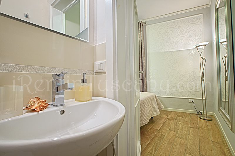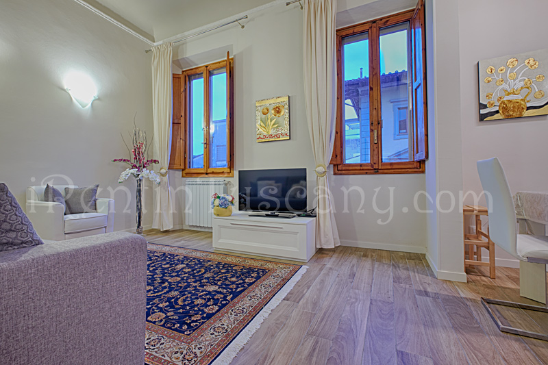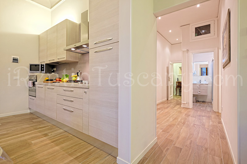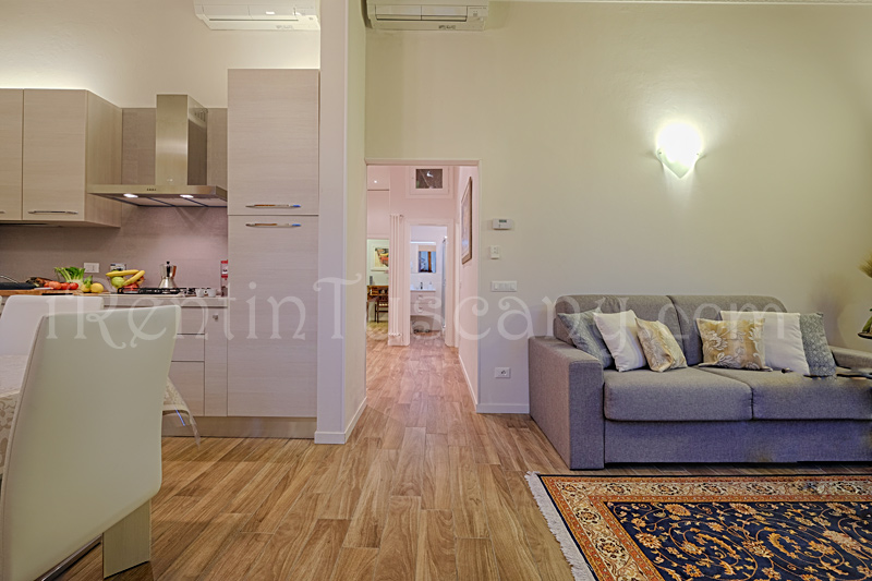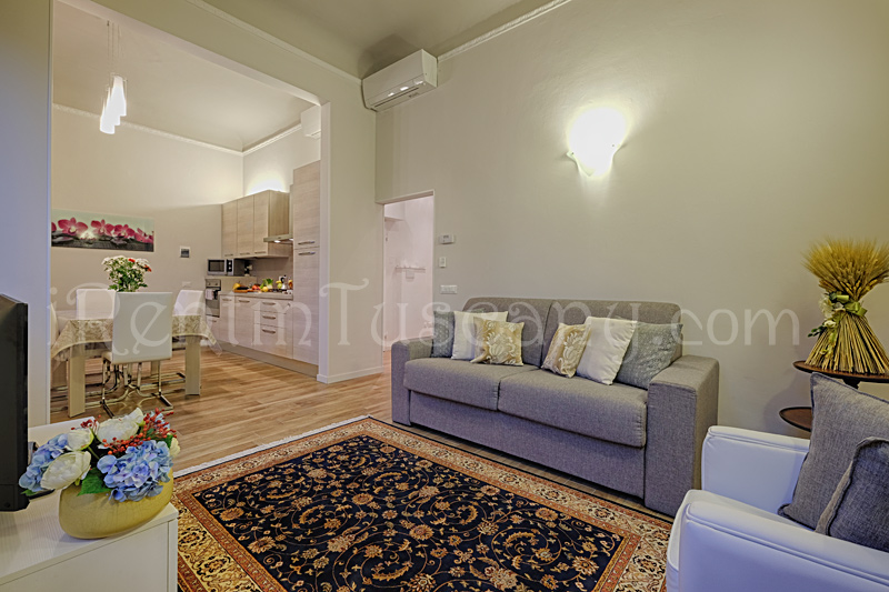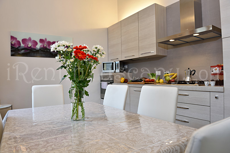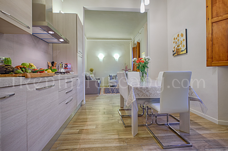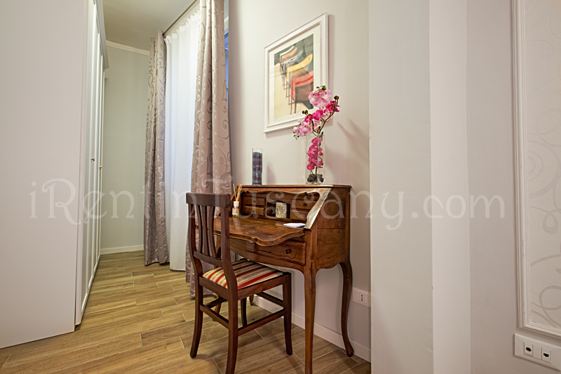 This apartment is located within a very short walk from Santa Maria Novella train station, and is situated in a historic building with newly renovated interiors decorated in a mix of modern and Tuscan furniture. Location is very central and within less than 10-minute walk to the Duomo, and many other sites of touristic interest in Florence. The Mercato Centrale fresh food and vegetable market, as well as San Lorenzo leather and gift vendors market are just a couple blocks away.
